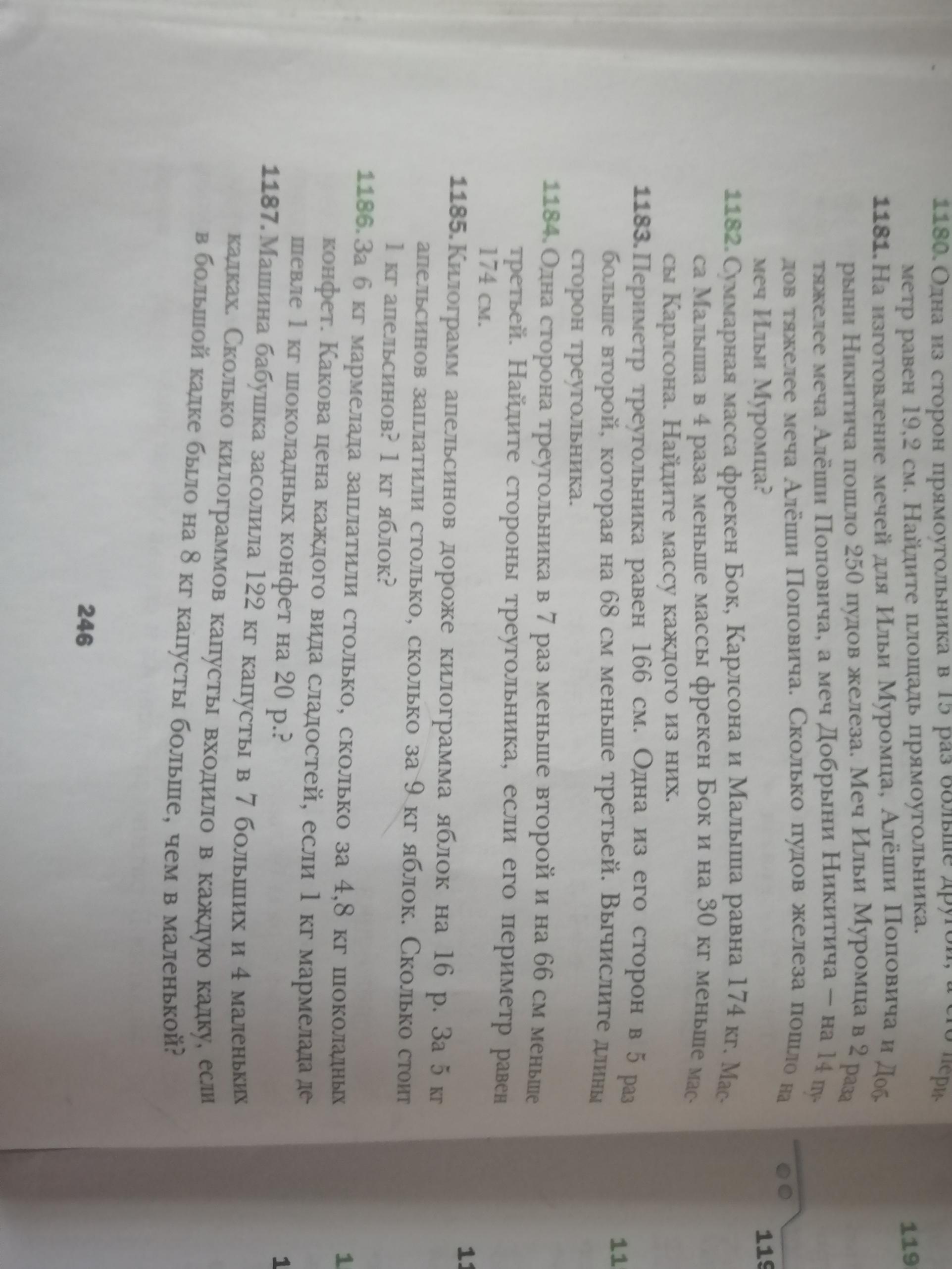Третяя сторона = хсм, вторая сторона = х-68см, первая сторона= 5(х-68), тогда