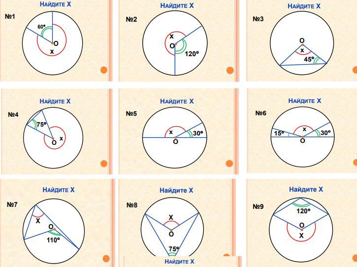 Это уже сложнее, очень неудобно объяснять... Посмотри, угол 65 градусов он опирается на 2 палки, видишь? Внутри 2-х этих палок (то есть одного БОЛЬШОООГО УГЛА, лежат 2 матеньких) До этого мы нашли углол 65 градусов, это угол вписанный.Вписанный угол-как проще сказать... Он кончиком своим касается окружности и равен половине центрального угла. Центральный угол-своим кончиком касается серединки окружности. Это оцень легко запомнить. Центральный касается центра, вписанный касается окружности. Отойдем от заданий. Смотри пример: