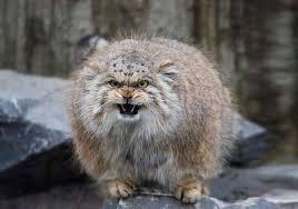 Манулы — Днём они обычно отсыпаются, а на охоту выходят ночью. Животные молчаливые. Даже маленькие котята всегда хранят молчание, чтобы не привлечь ненужного внимания.Толстый и увесистый хвост манула кажется короче, чем он есть, из-за пушистой и длинной, до 7 см, шерсти. В отличие от домашних кошек, манулы не умеют мяукать. Зато они могут фыркать и рычать.