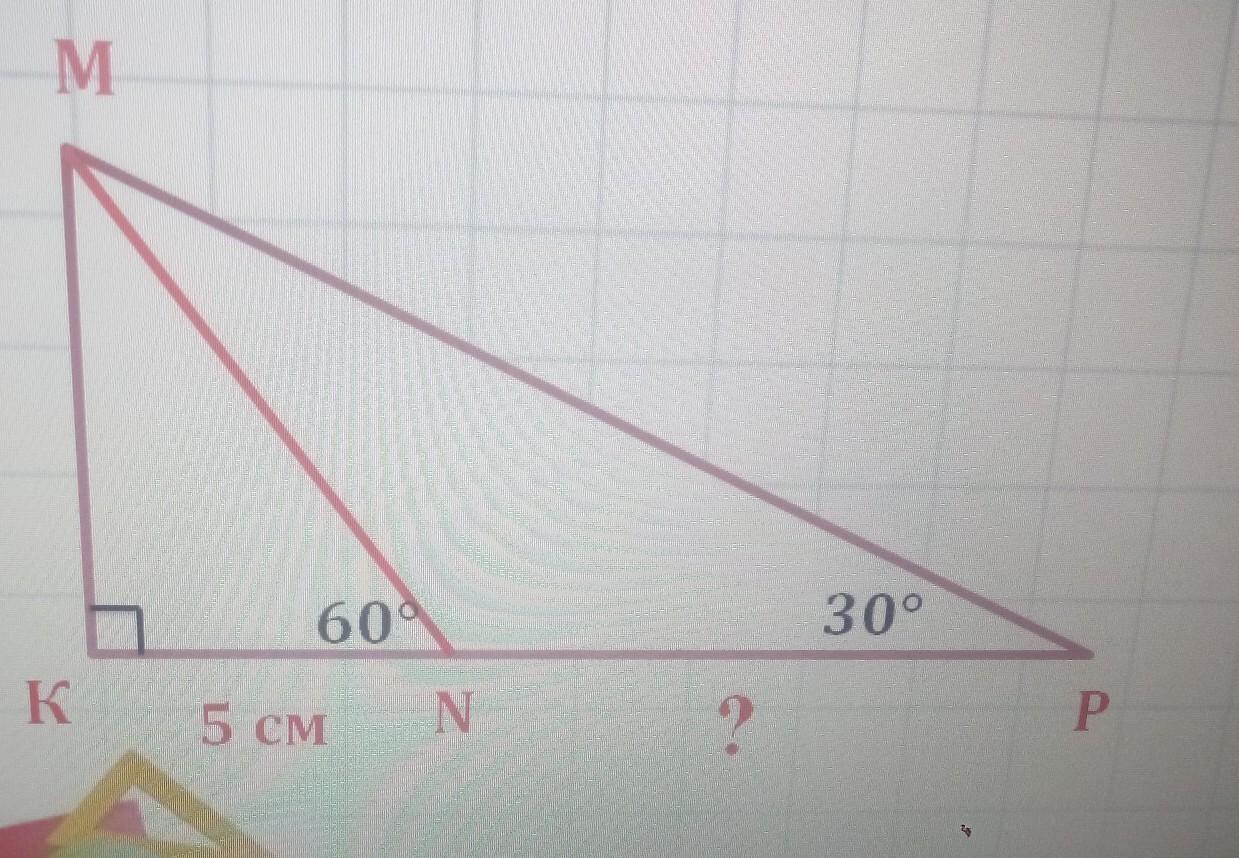KM/KP=tan 30° => KP=15, NP=15-5=10 см