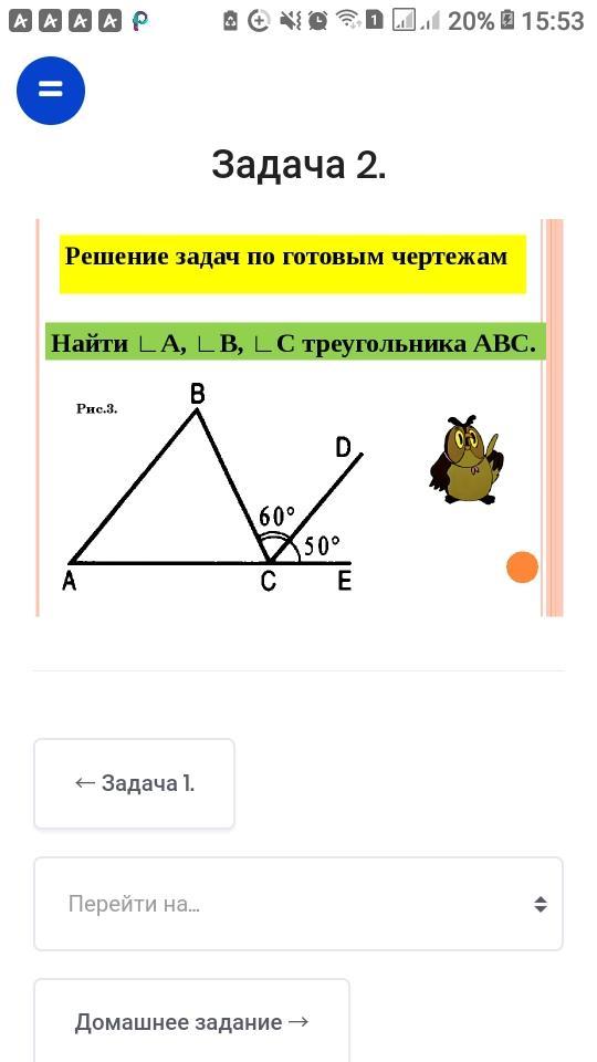 Угол С смежен с углами ВСD и DCE, значит сумма этих трех углов 180°, С=180°-BCD-DCE=180°-60°-50°=70°