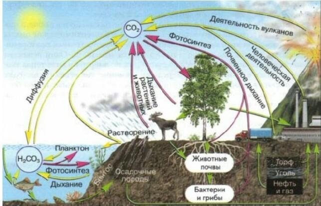 3)Высвободившийся в атмосферу при дыхании или сжигании топлива;