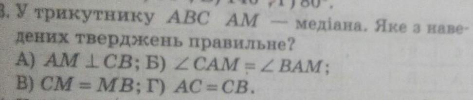у трикутнику авс am медіана яке з наведених тверджень правильне​
