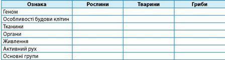Порівняльна характеристика рослин, тварин й грибів будь ласка дуже треба