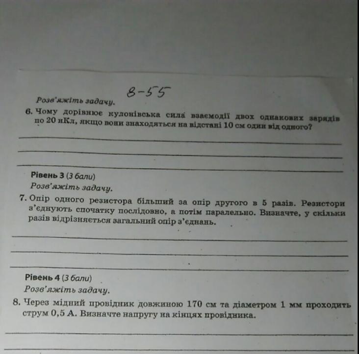 Фізика 8 клас Закон Ома та Закон Кулона.Треба здати в 6 годині хелпп