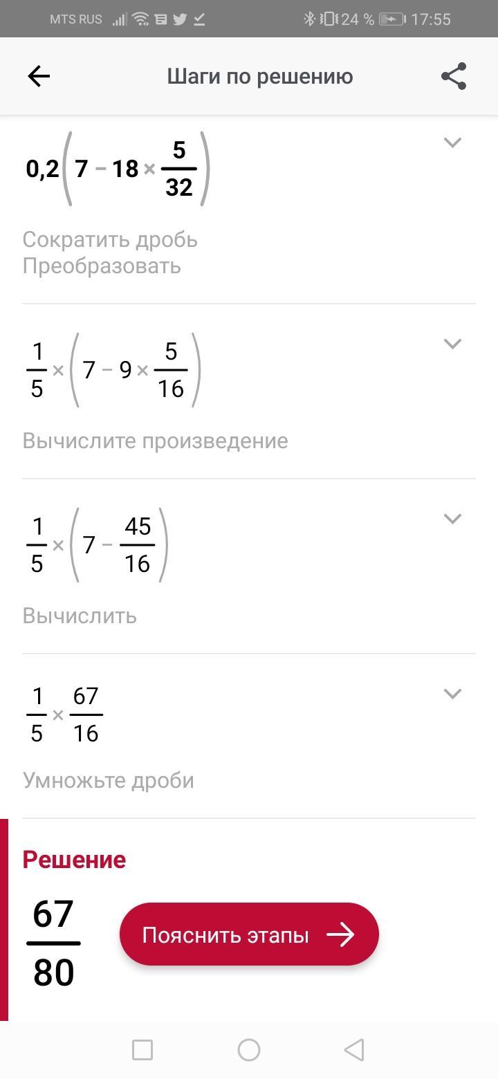 2) поставляем значение а = 5/32 в полученный нами пример и получается 67/80