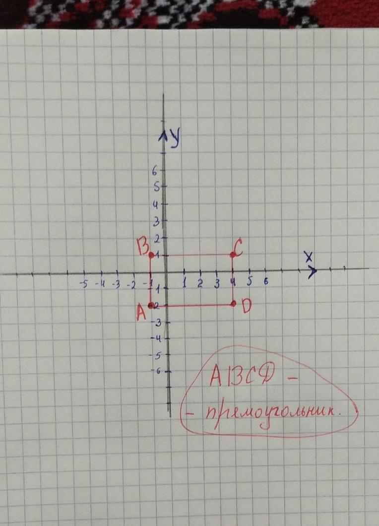 Точка А(-1;-2),В(-1;1),С(4;1),D(4;-2) являются вершинами прямоугольника.Постройте этот прямоугольник