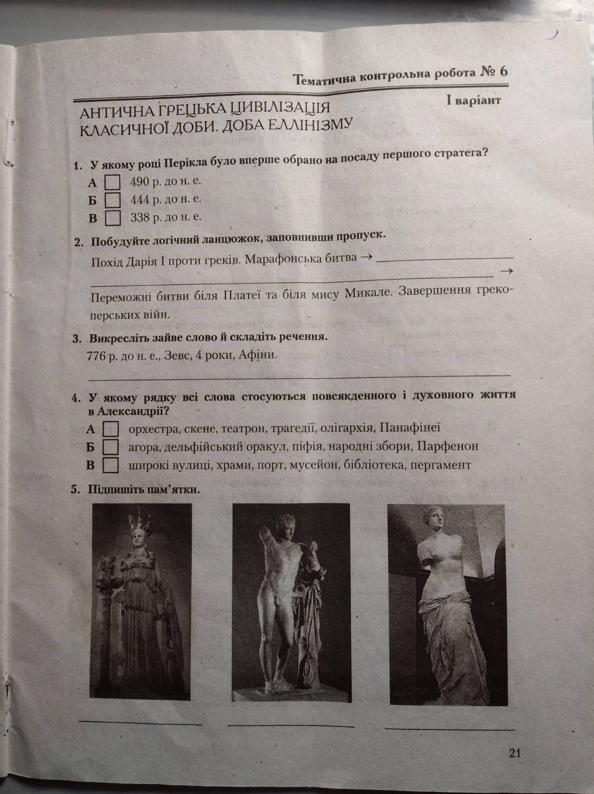 Тематична контрольна робота з Історії, 6 клас. Даю 75 балов СРОЧНО!