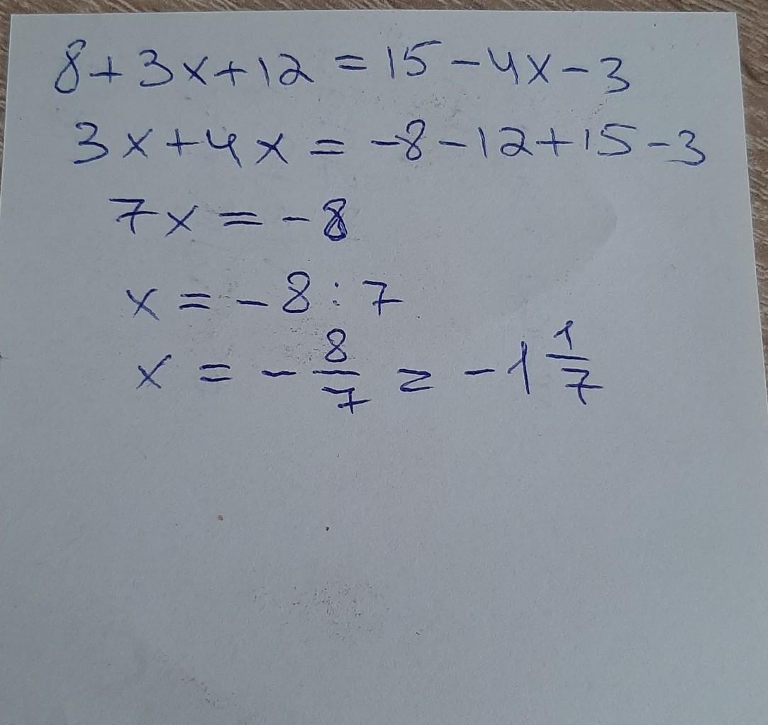 1Подчеркиваешь подобные карандашом.Получается.(8+12=15-3)