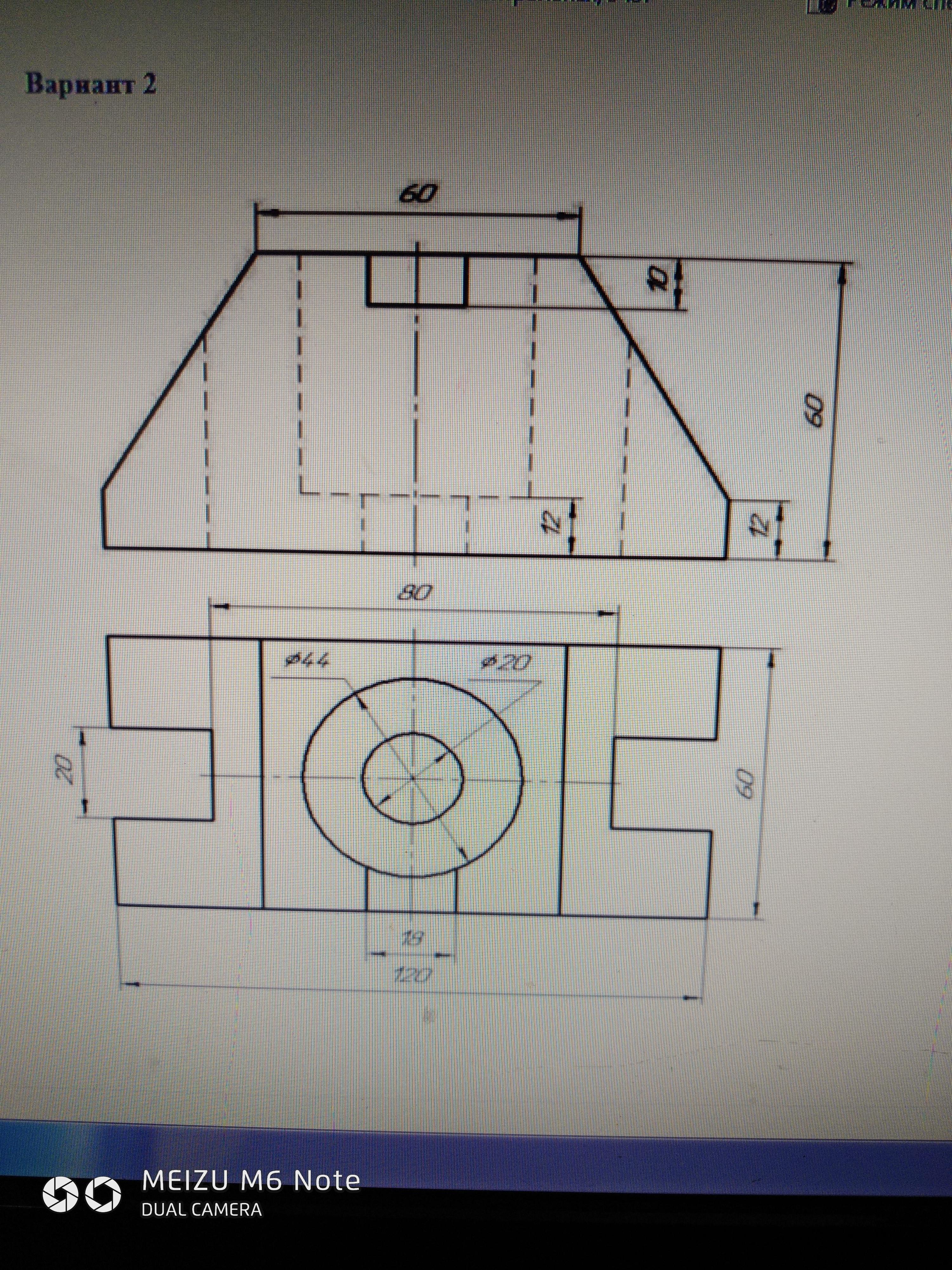 Ответ: Чертёж для детали варианта №2 смотрите на фото.