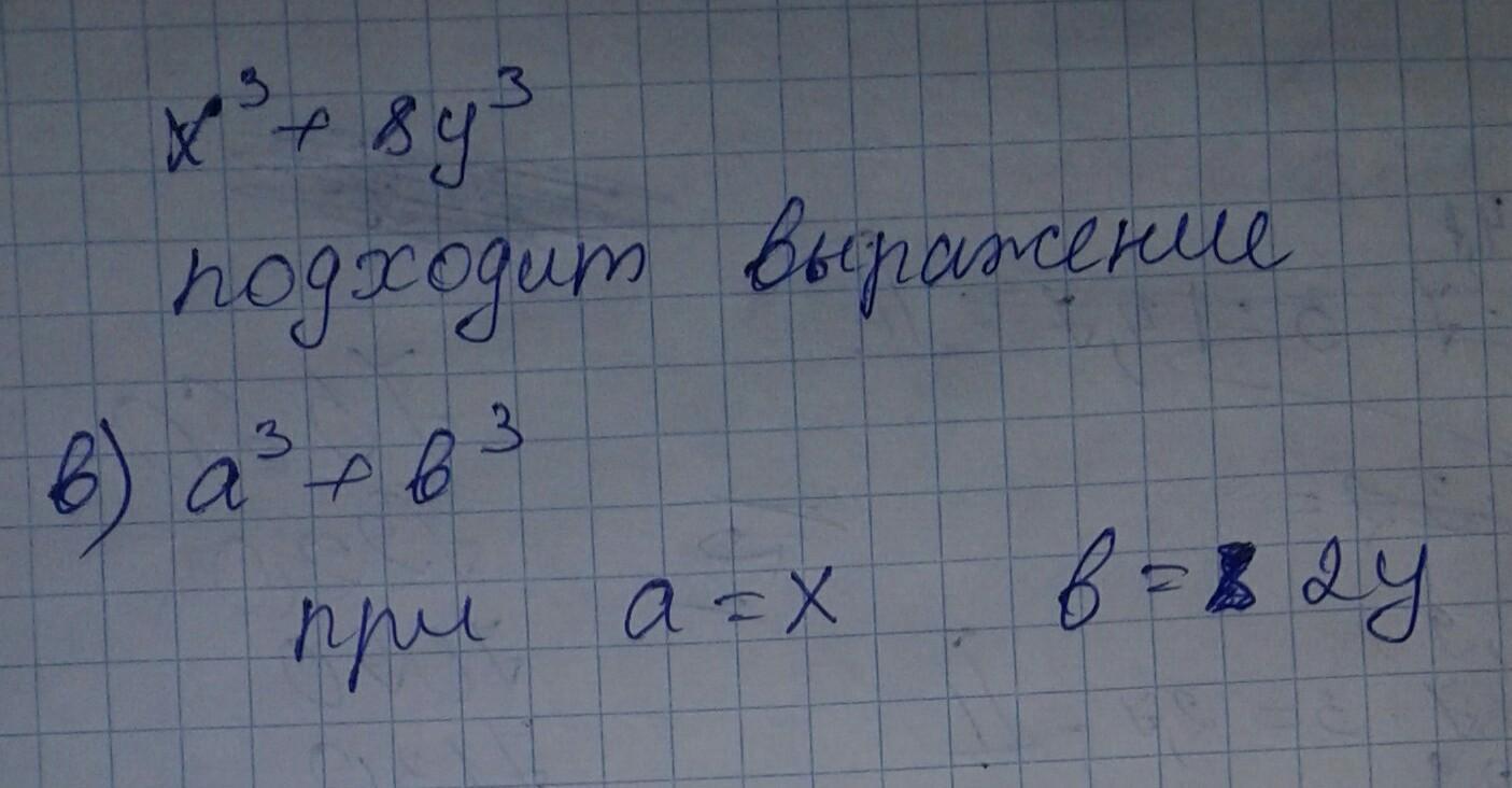 В выражении x^3+8y^3 степени равно 3. В вариантах только в В варианте было степень 3