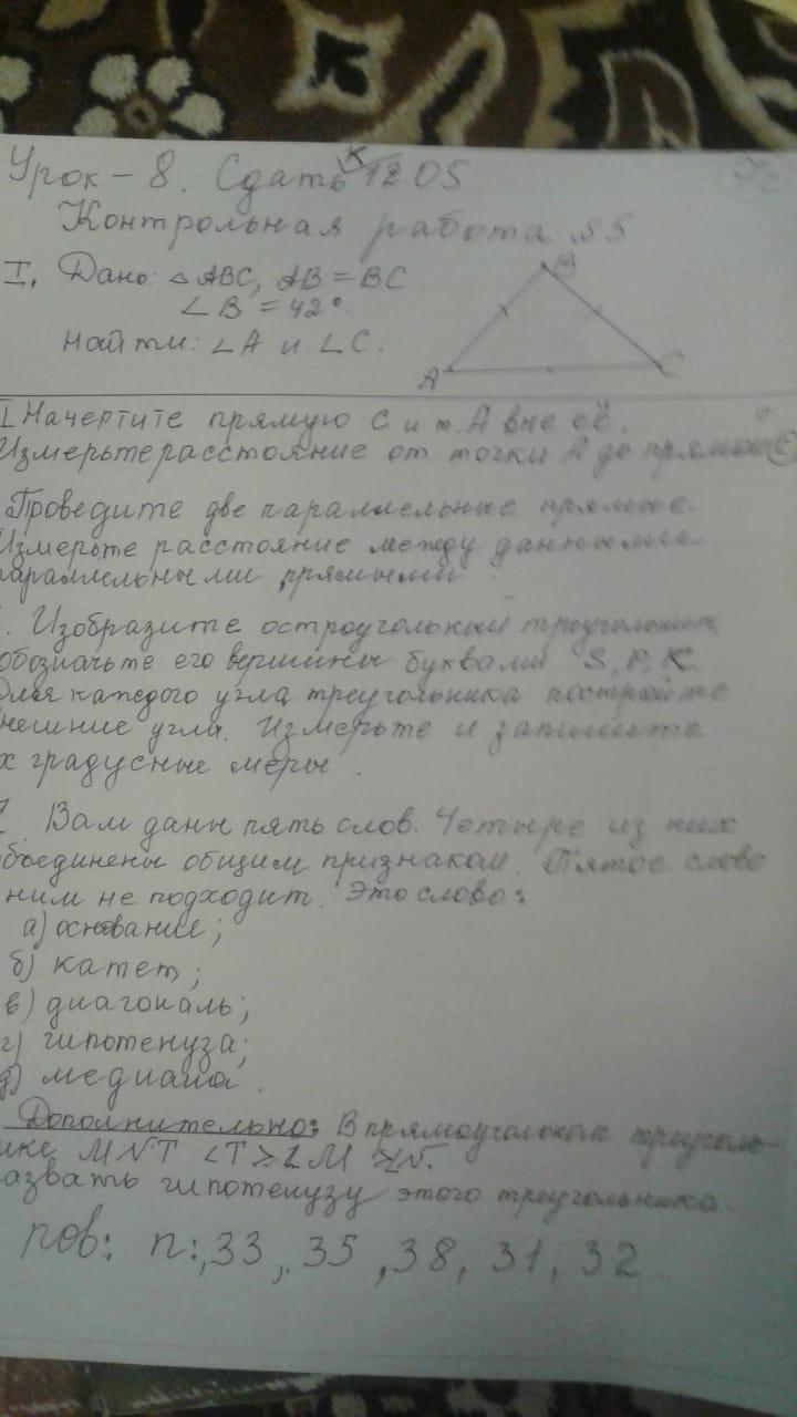 Помогите пожалуйста сделать контрольную работу по геометрии с подробными решениями и чертежами. Даю 50 баллов