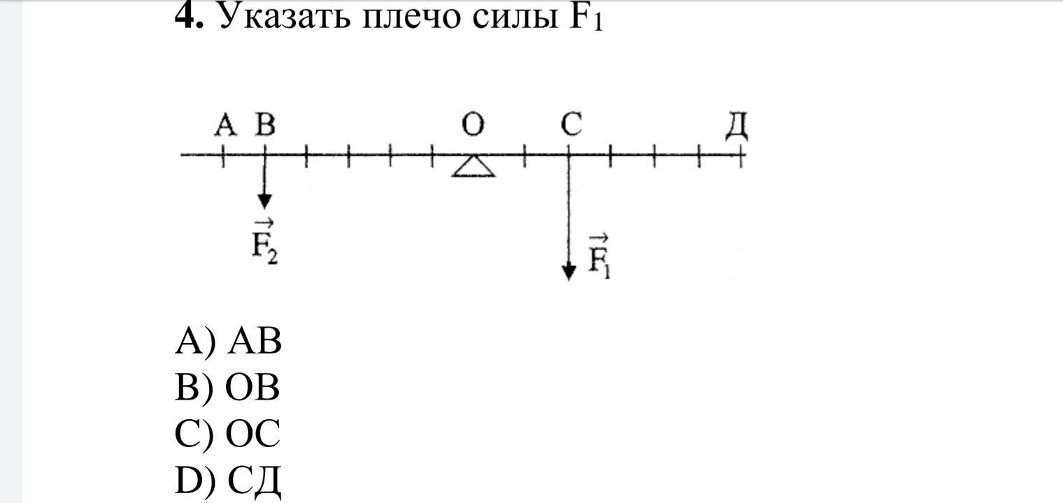 плечо силы - кратчайшее расстояние (т.е. перпендикуляр) от точки, относительно которой определяется плечо (здесь: точка опоры О), до линии действия силы