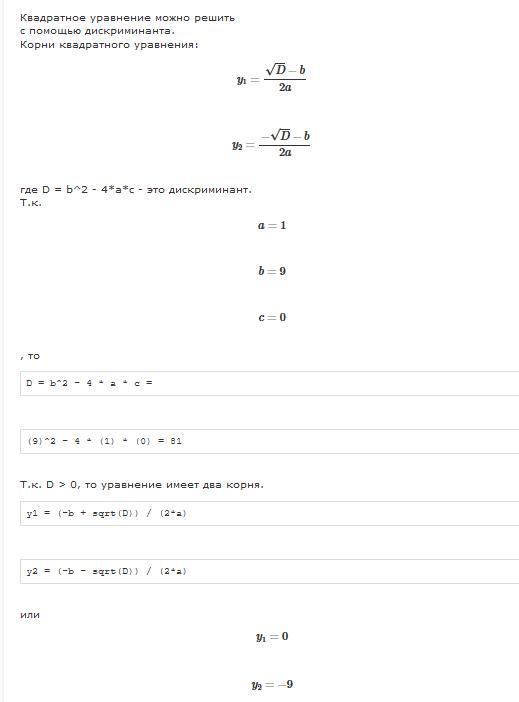 y^2+9y=0 .Игрик в квадрате минус девять Игрик равно нулю. Подскажите пожалуйста за каникулы забыла(((.