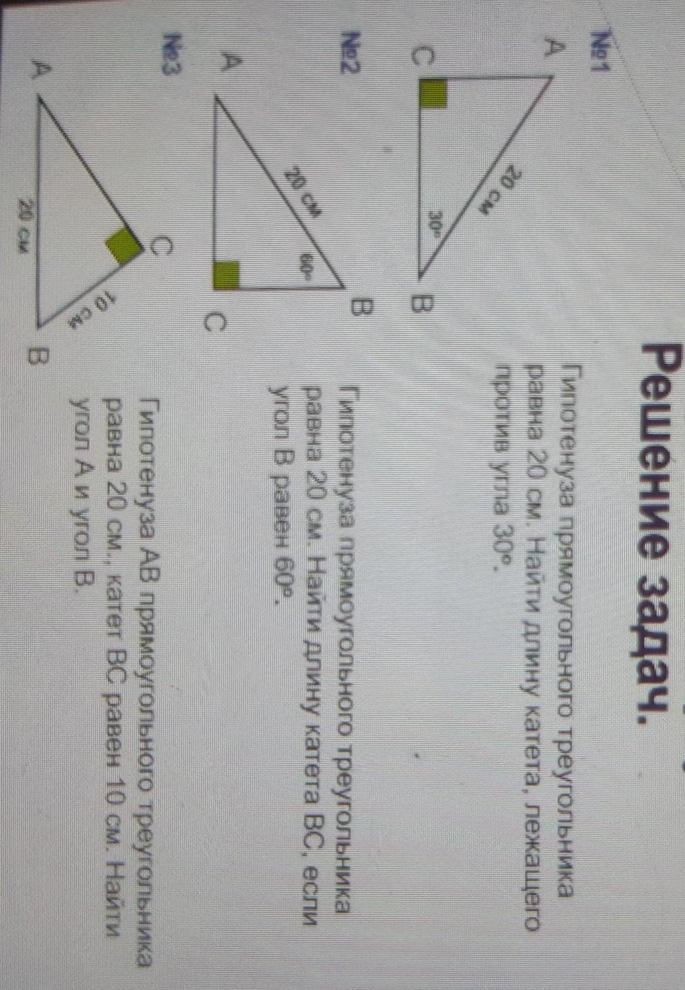 1) катет лежащий напротив угла в 30° равен половине гипотенузы, значит АС=1/2АВ=20/2=10см