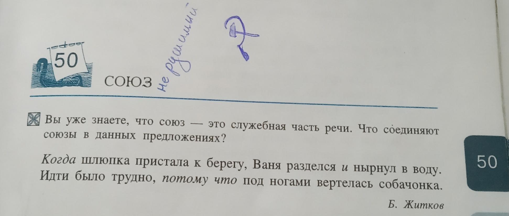 когда шлюпка пристала к (чему) берегу. Ваня разделся и (что) нырнул в воду.Идти было трудно, потому-что (что) под ногами вертелась собачонка