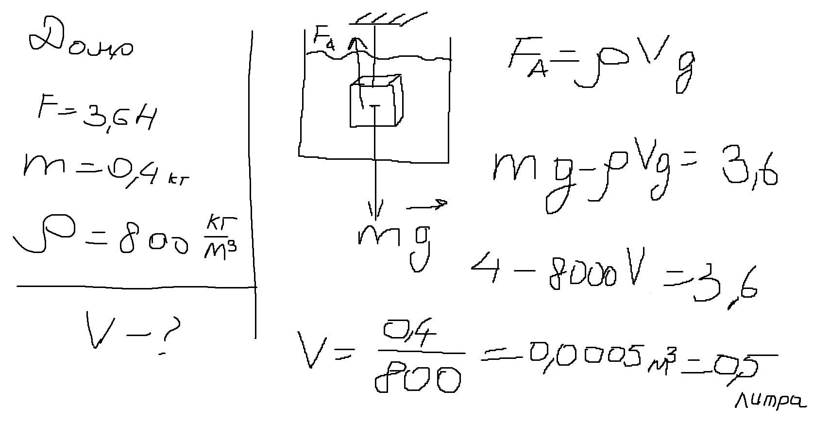 заготовку масою 400 г підвісили до Динамометра і опустили у газ. який об'єм заготовки якщо покази Динамометра становить 3,6Н???