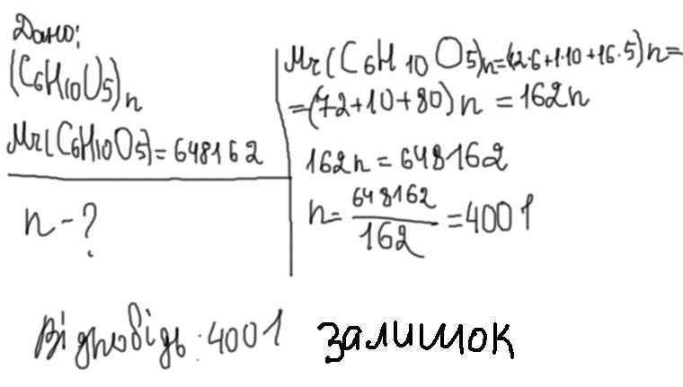 Знайди, скільки приблизно залишків глюкози міститься в макромолекулікрохмалю, якщо середня відносна молекулярна маса становить 648162.