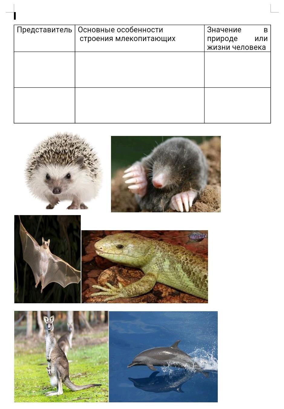 1. Рассмотрите фотографии животных, выберите всех млекопитающих.