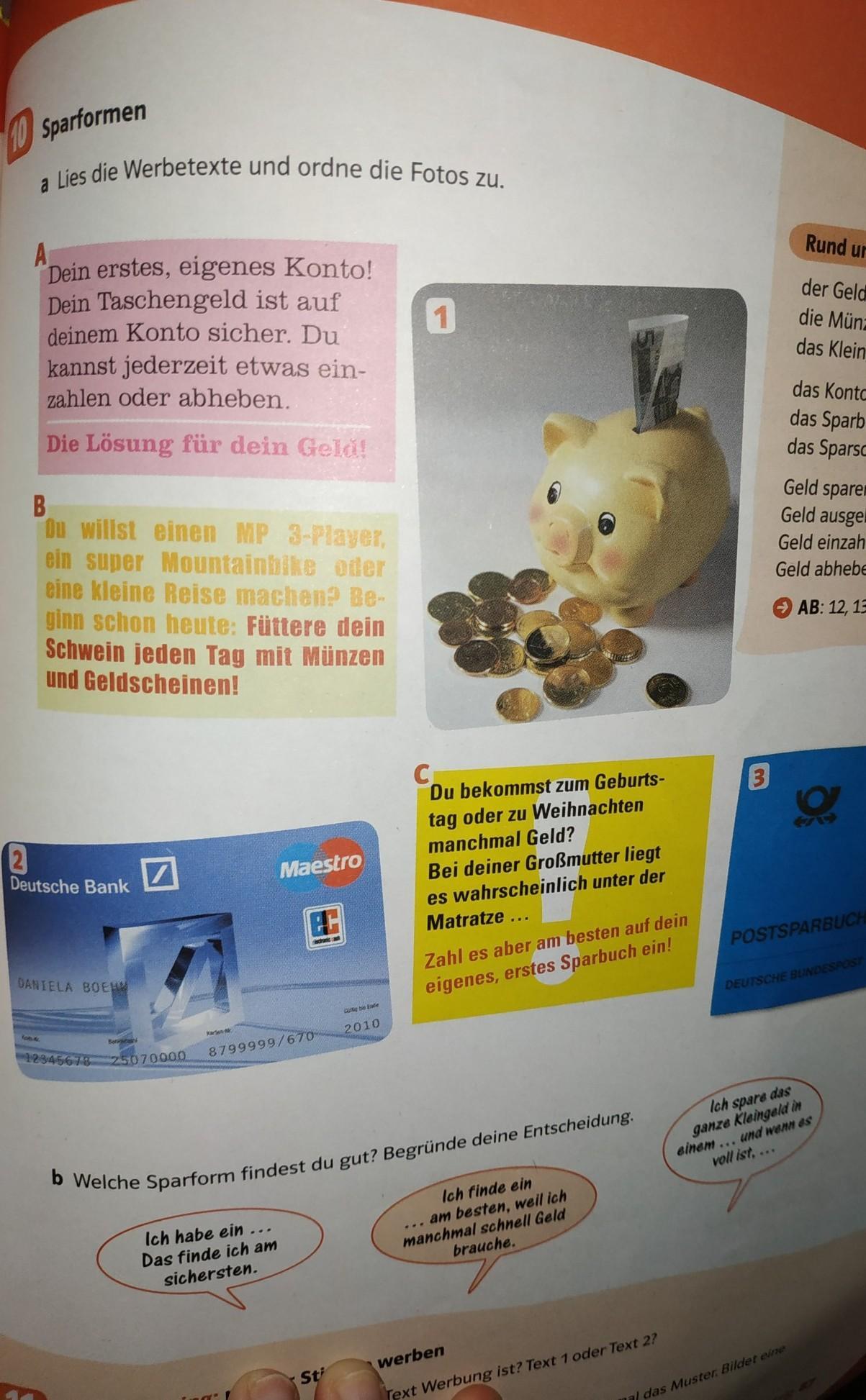 А - твой первый собственный счет в банке! Твои карманные деньги надежно лежат на твоем банковском счете. Ты в любое время можешь внести что-нибудь на счет или снять с него деньги. - Решение для твоих денег!