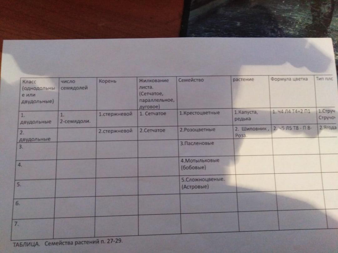 Помогите,составьте таблицу по семейства растений