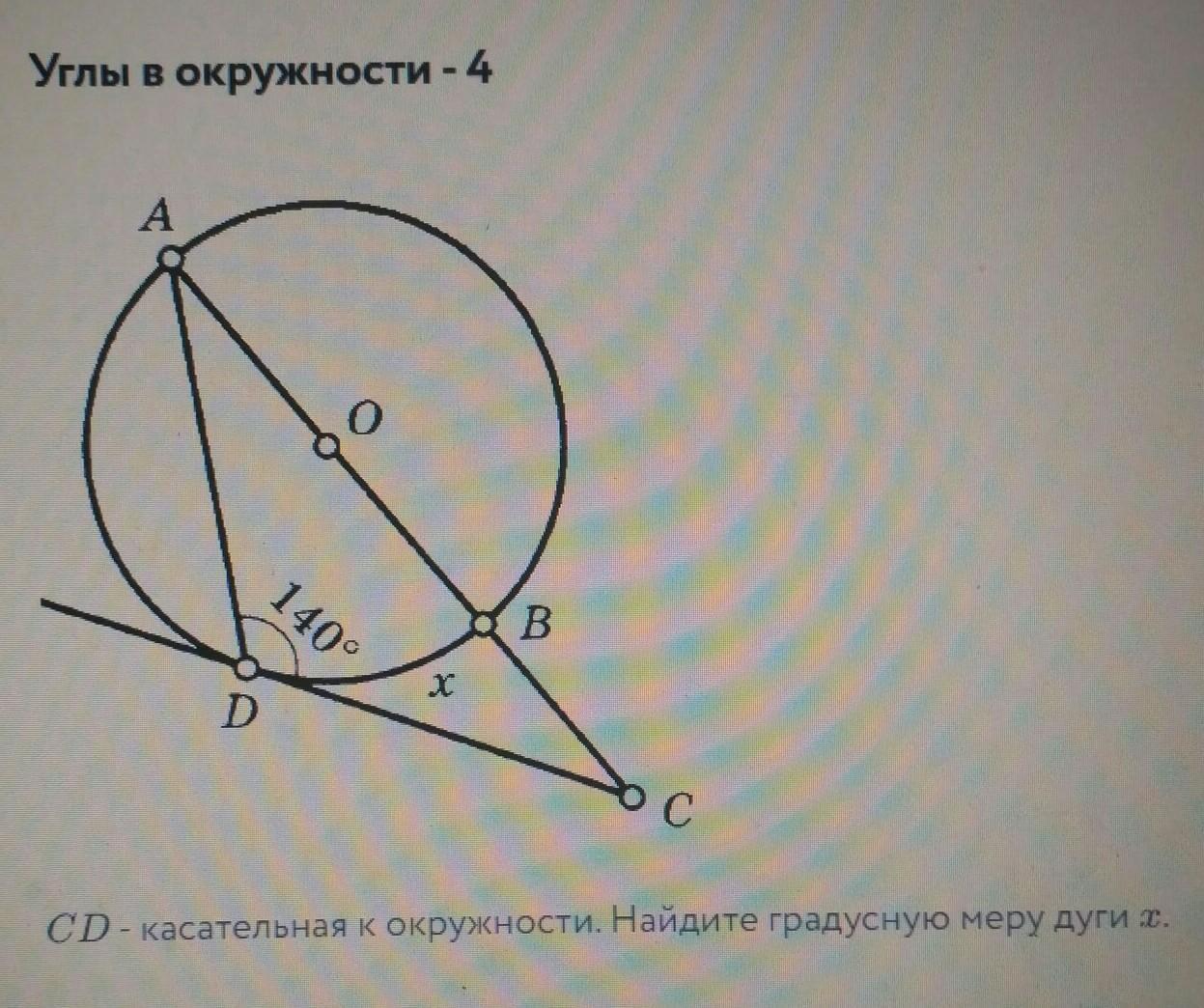 CD - касательно к окружности. найдите градусную меру дуги x ​