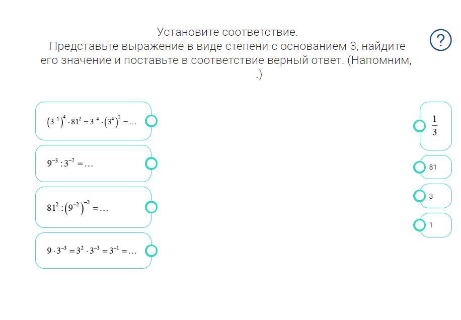 4) 3^-1 = 1/3
