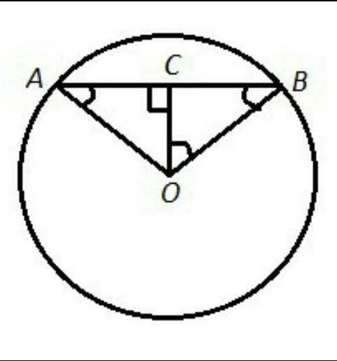 из центра окружности о к хорде AB проведён перпендикуляр AD c Найдите длину хорды если угол C равен 6 см угол аоб равен 45 градусов