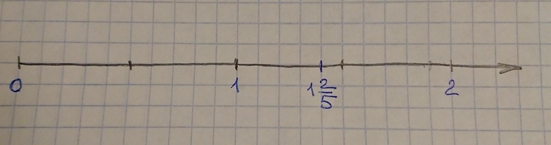 Правильно говорят. Задание было отобразить точку 1 целая и 2/5. Это 1,4. Т.е. 14 клеточек от 0.
