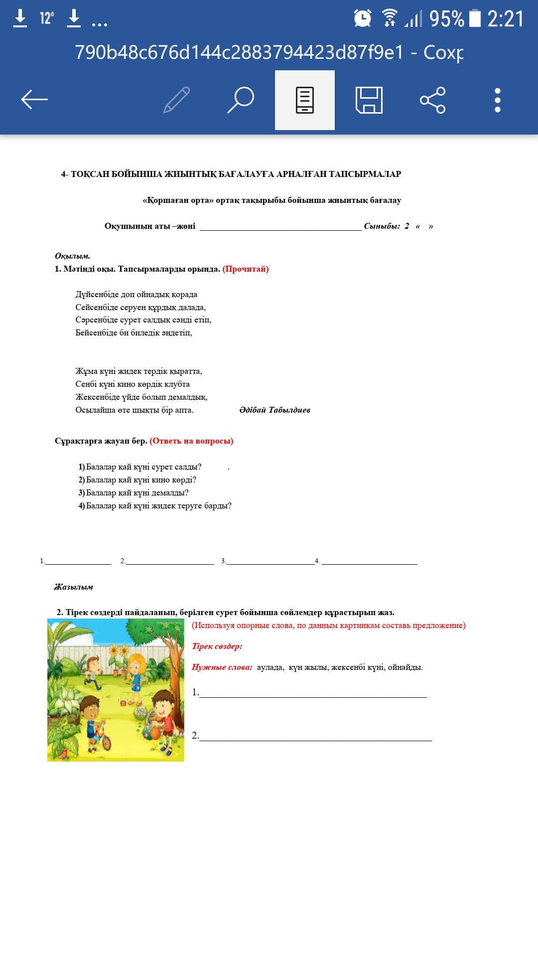 2) Жексенбі күні , күн жылы кезде, балалар топ -тобымен ойнайтын.
