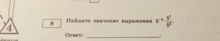 При деление степени вычитаем , а при умножении складываем , следовательно 5^-3*5^5=5^2=5*5=25. Ответ 25. ^- означает степень. Надеюсь Вам помог!