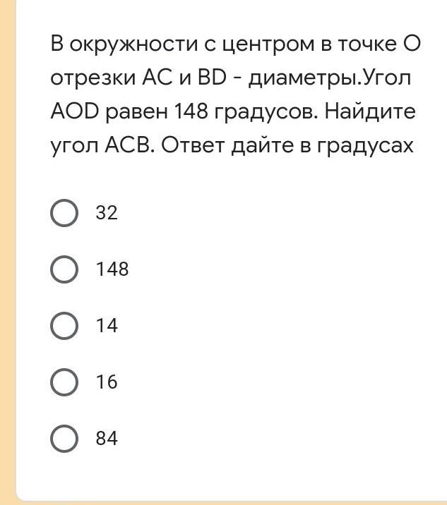 значит ∠ACB =∠AOB : 2=16°