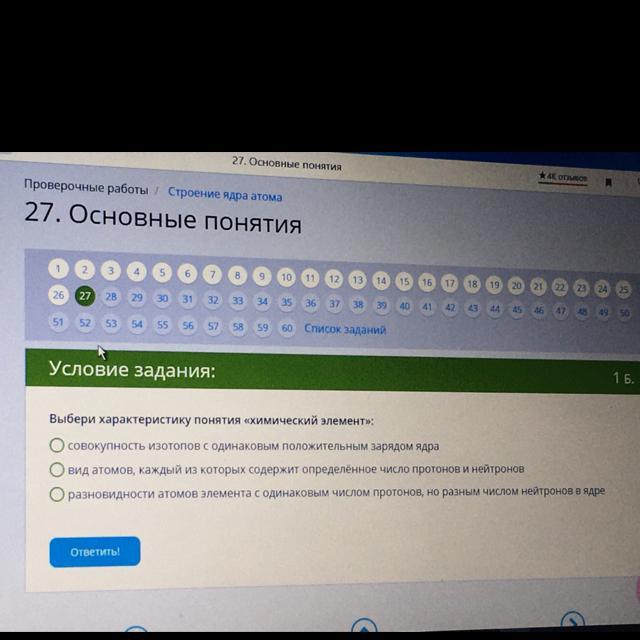 либо 1 либо 2, потому что химический элемент это разновидность атома с одинаковым зарядом ядра