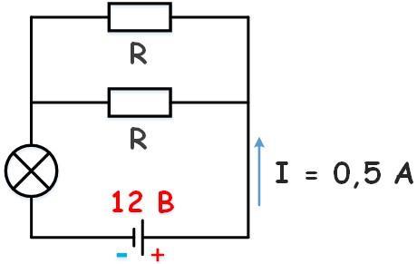 2. К аккумулятору с ЭДС 12В и внутренним сопротивлением 1 Ом подключили лампу сопротивлением 13 Ом и два одинаковых резистора по 20 Ом. Найти напряжение на лампе и на резисторах. (рис. 2)