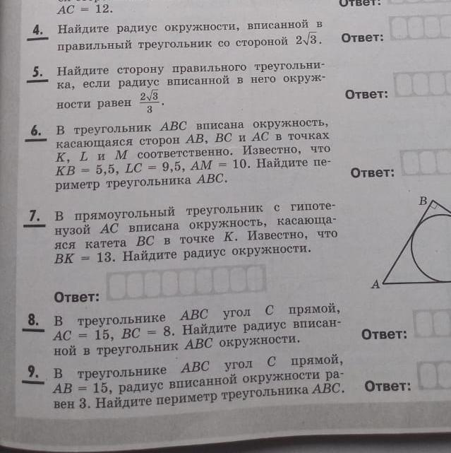 4) формула нахождения радиуса вписанной окружности в правильный треугольник: