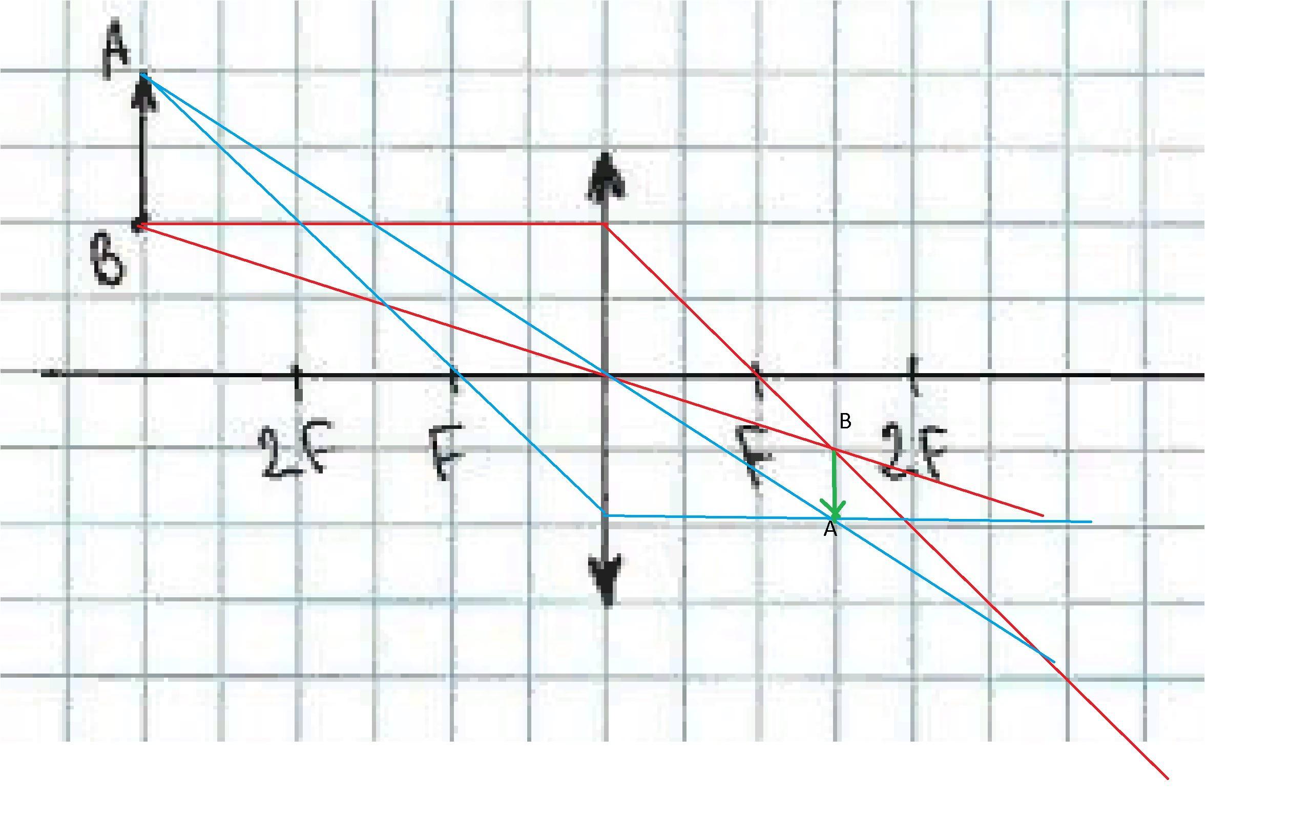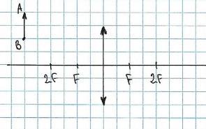 Построить изображения тела АБ (ab) в линзе и каковы свойства этого изображения. Обращаю Ваше внимание на расположение тела по отношению к линзе. Точка А