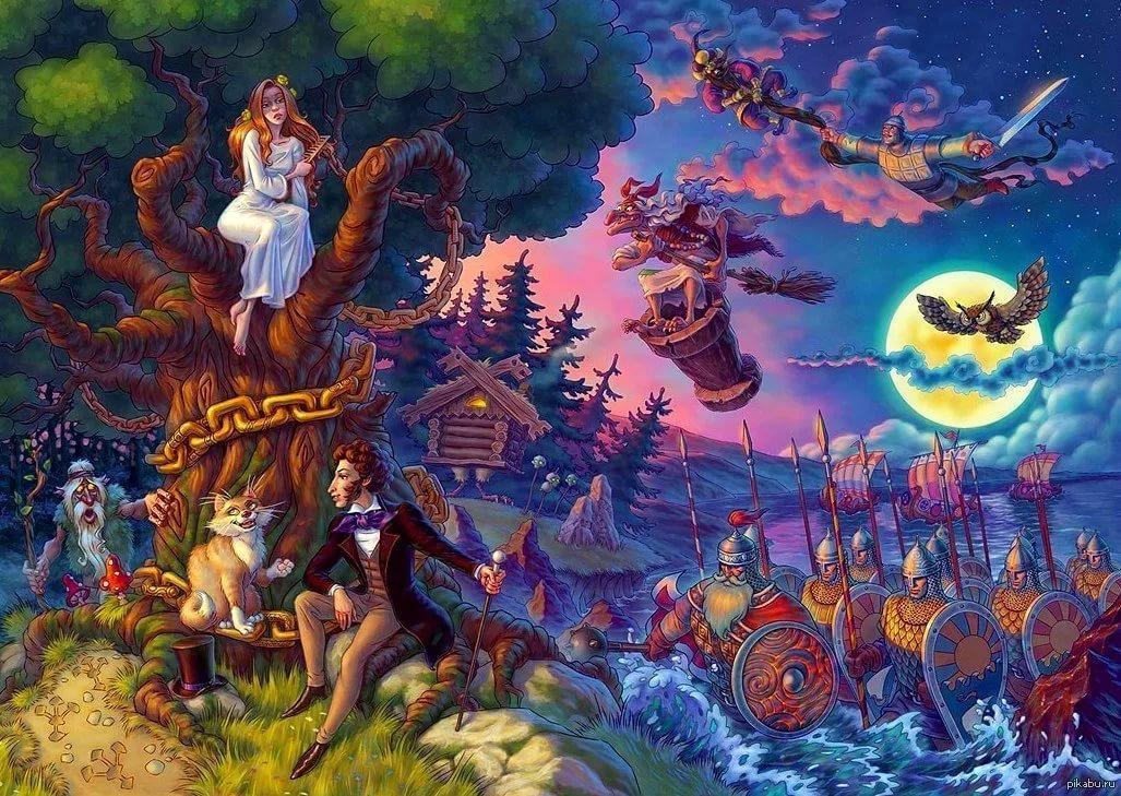 Рассмотри иллюстрации к прологу поэмы А.С. Пушкина. По понравившейся иллюстрации напишите сказку, в которой героями будут персонажи из пролога к поэме «Руслан и Людмил