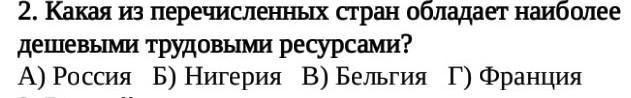 Б) Нигерия В Нигерии(из перечисленных стран) меньше всего каких либо трудовых ресурсов