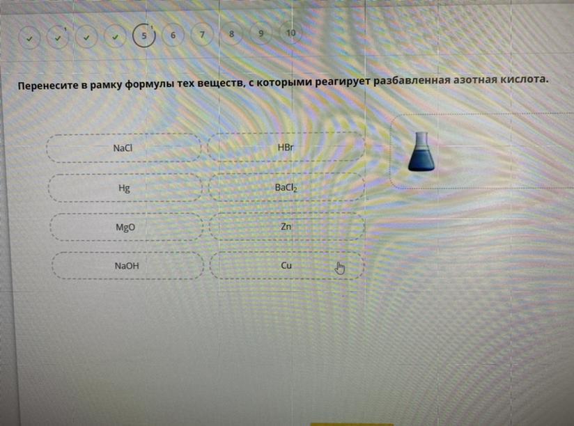 MgO, Cu, Zn, NaOH, Hg. Разбавленная азотная кислота - оксокисклота