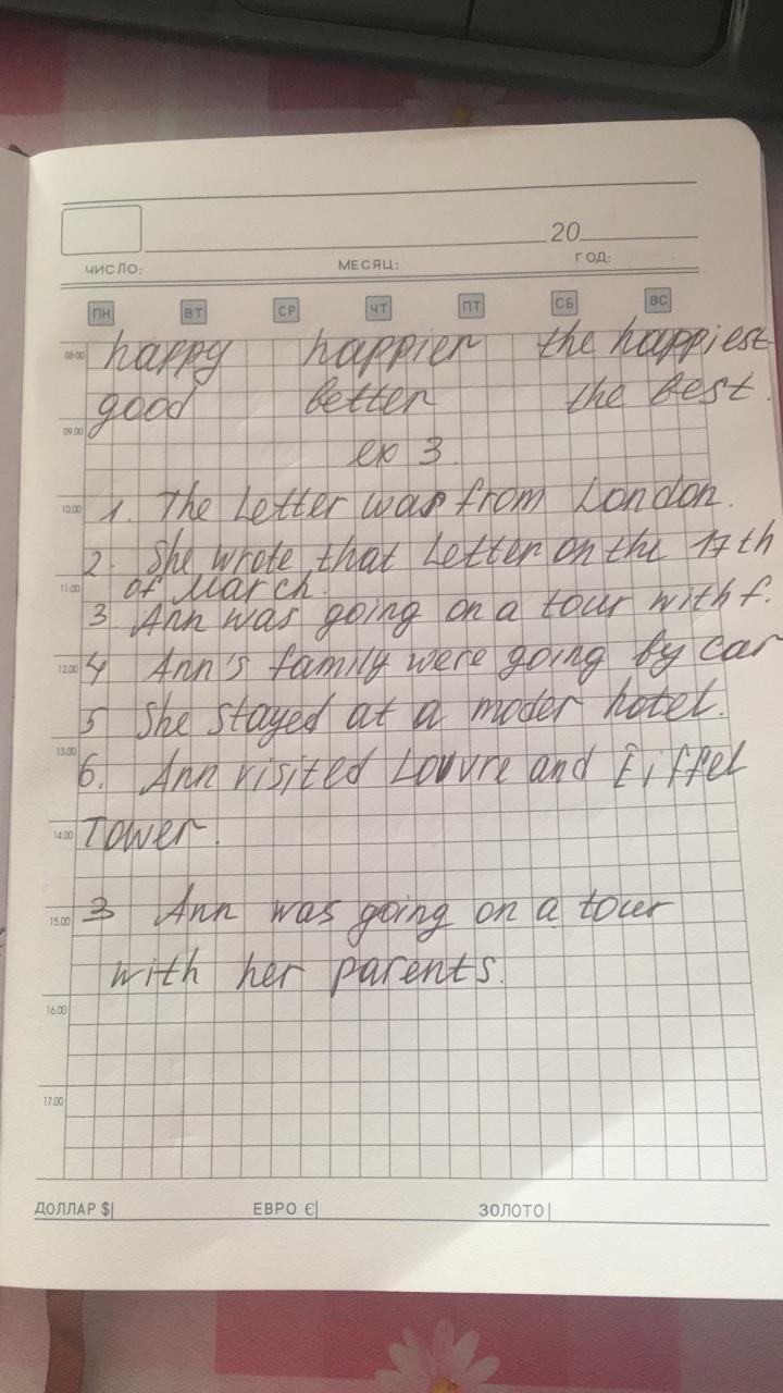 кстати там 3 предложение где про Анн не вместилось, я ниже написала в тетради