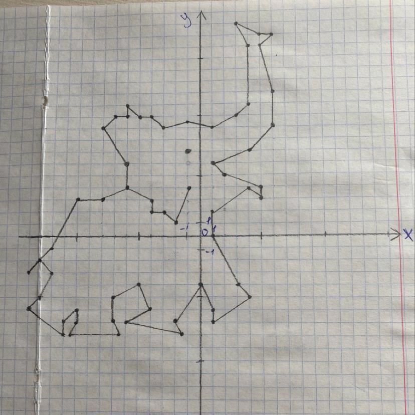 (2; 5), (5; 4), (5; 3), (4; 4), (1; 2), (1; 0), (3; -4), (4; -5), (1;-7), (1; -6), (0; -4), (-2; -7), (-1,5; -8), (-5; -7), (-4; -6), (-5; -4), (-7;-5), (-7; -7), (-6,5; -8), (-10,5; -8), (-10; -7), (-10; -6), (-11; -7),