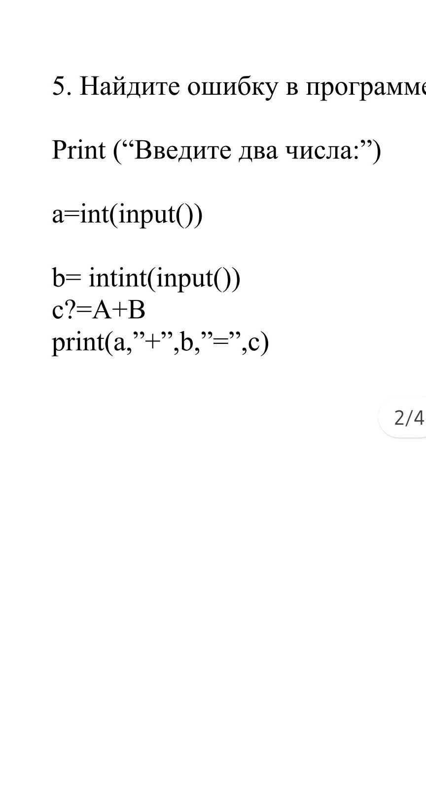 найдите ошибку в программе сложение двух чисел