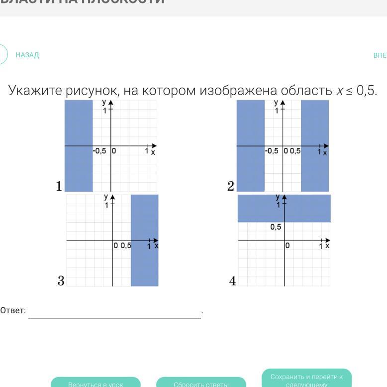 Укажите рисунок, на котором изображена область x ≤ 0,5.