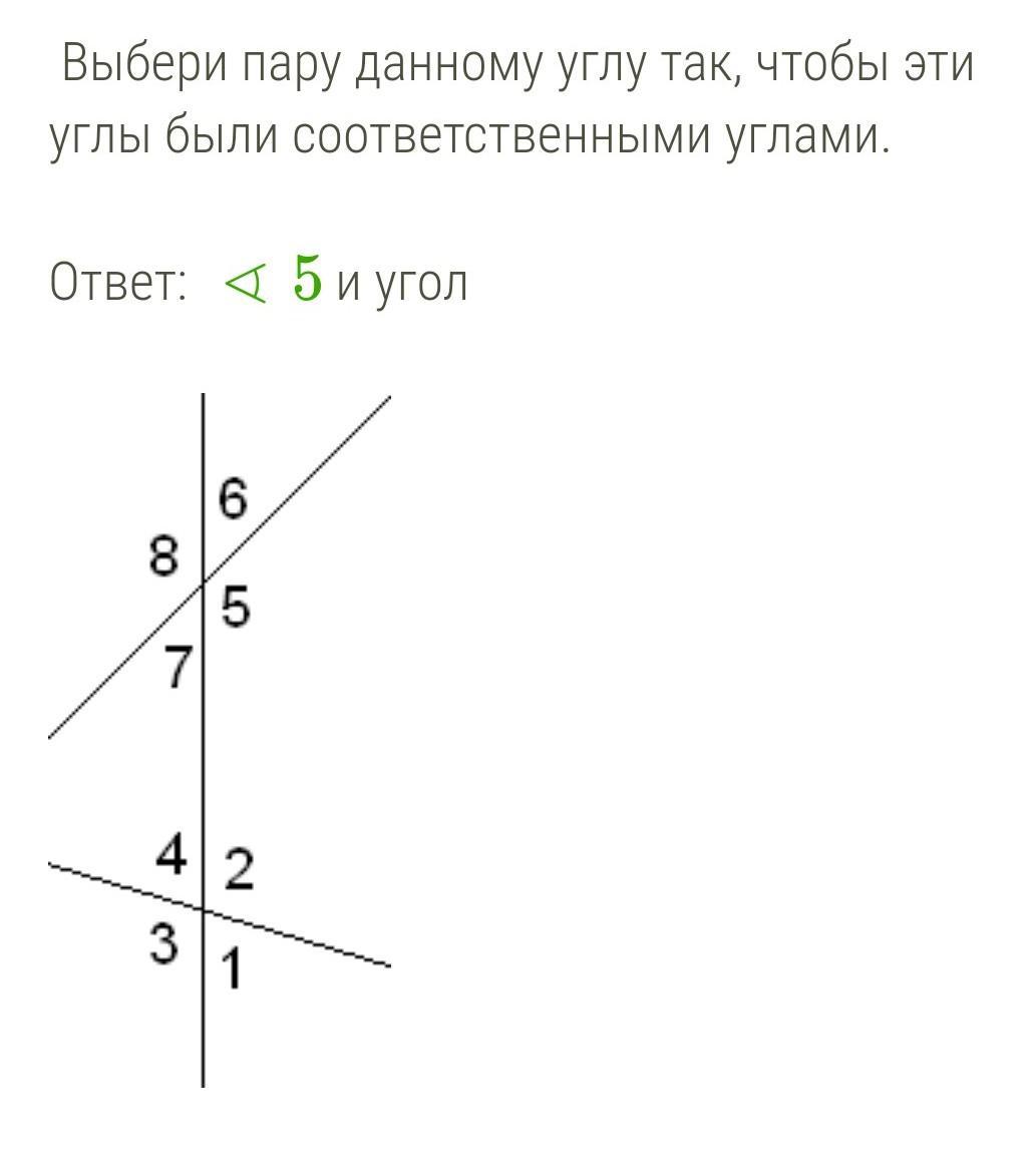 Выбери пару данному углу так, чтобы эти углы были соответственными углами.