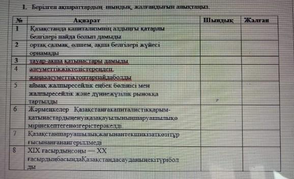 Берілген ақпараттардың шындық ,жалғандығын анықтаңыз​