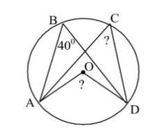 Угол В и С равны по 40 градусов (как вписанные углы). Угол О равен 40×2=80(по формуле). Я могу ошибаться, но вроде так
