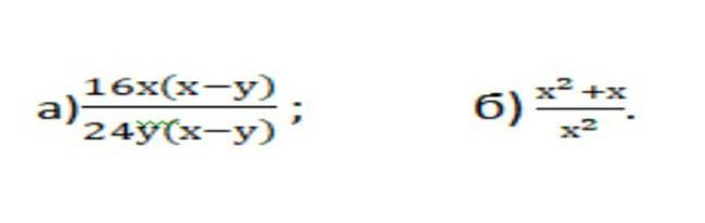 а) Сокращаешь (х-у) в знаменателе и числителе, остается сократить 16 и 24, получается ответ: 2х/3у