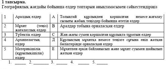 географиялық жағдайы бойынша елдер топтарың анықтамасымен сәйкестеңдірініз