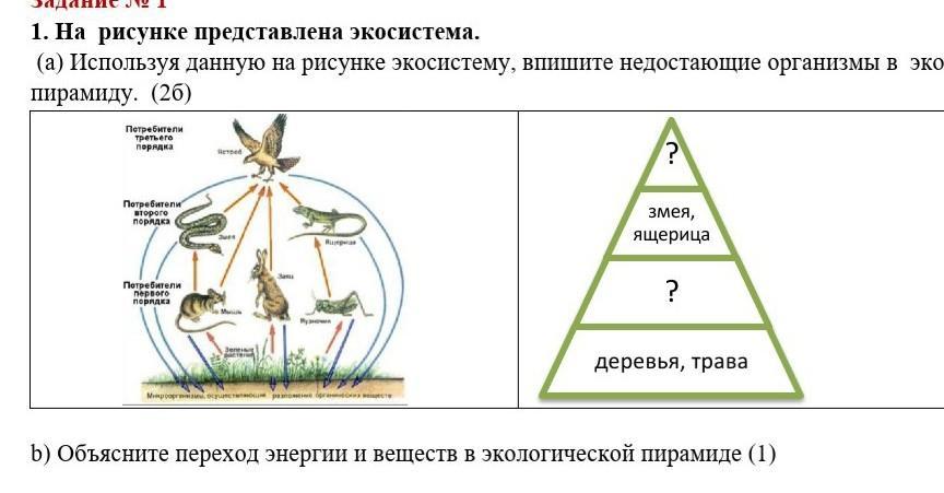 Используя данную на рисунке экосистему, впишите недостающие организмы в экологическую пирамиду. СОР ЕСТЕСТВОЗНАНИЕ ПОМОГИТЕ