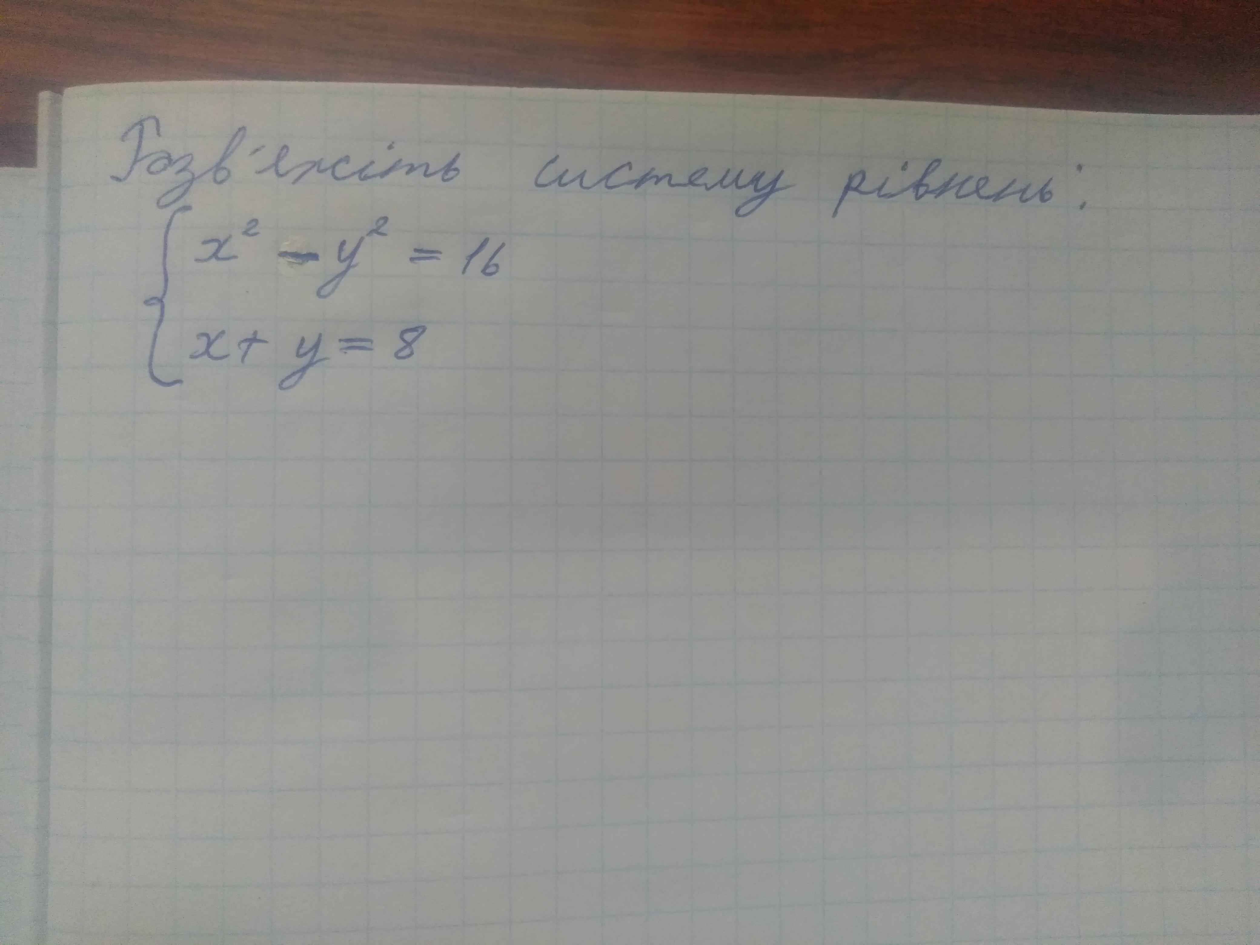 Розв'яжіть систему рівнянь: {х²- у²=16 {х+у=8